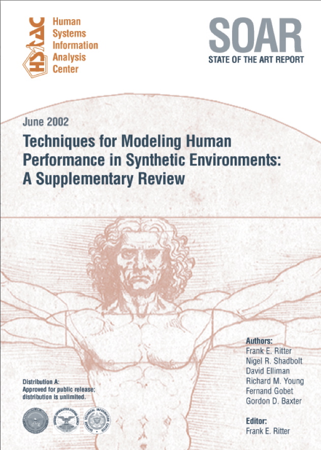 Ritter, F. E., Shadbolt, N. R., Elliman, D., Young, R., Gobet, F., & Baxter, G. D. (2003). Wright- Patterson Air Force Base, OH: Human Systems Information Analysis Center. This book is a reply to Pew & Mavor funded by the UK government, and it includes about 30 projects in this area, many of which we have been working on. Some have appeared as program announcements in the UK (intentional), and in the US (we don't know the casuality).